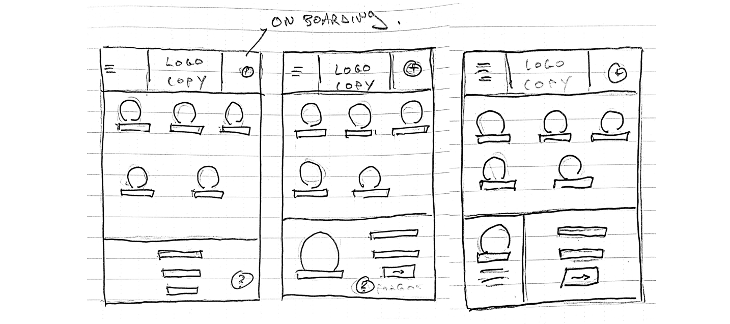From pen and paper sketches, I then developed medium Fidelity wireframes within the Sketch App to get a sense of exact space and I could start to add some more substantial content. At this point I had still not landed on a final layout so some screens are alternate versions.