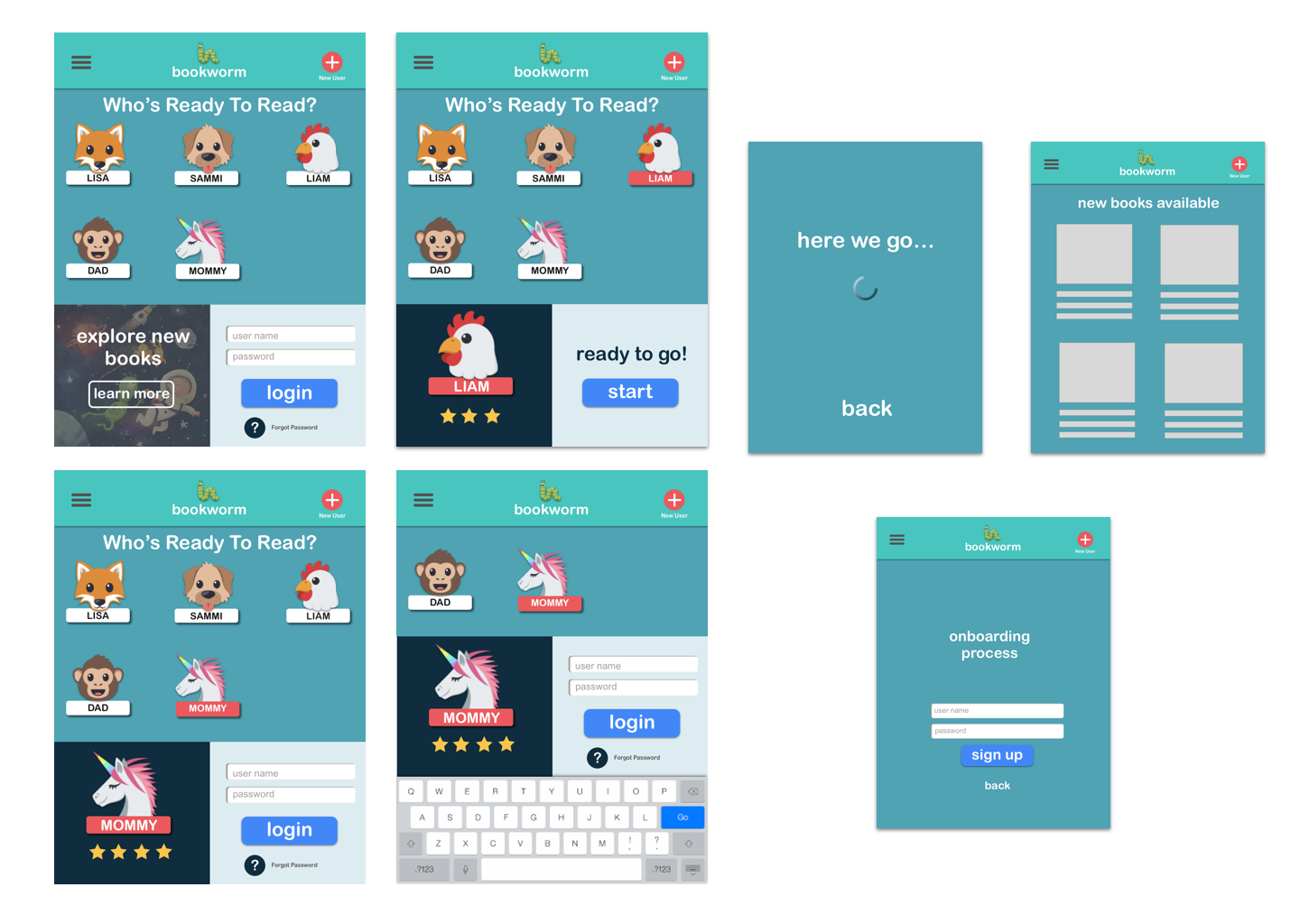 To chart this, even though there were multiple difference possible scenarios of use, I decided to focus on the child returning to read their book on a family device. From this starting point I could develop a user flow and ultimatly a design that is speceific to them.