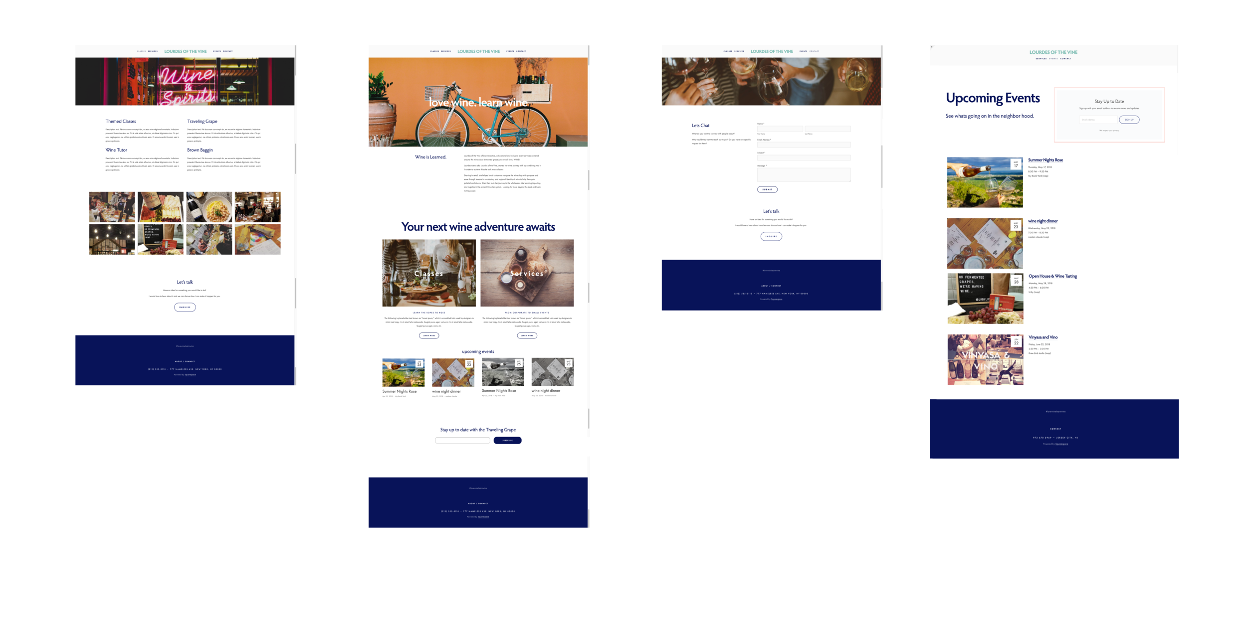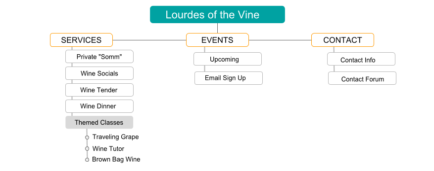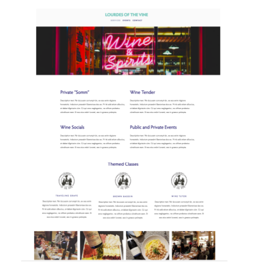 Lourdes of the Vine is a small local business that specializes in unique wine tastings, classes and services both private and corporate. Currently most of their business comes in by word of mouth and personal networking. With expanding their customer base, they need to be able to solidify the businesses value proposition to a variety of potential customers on a central website that can take care of some of the initial back and forth conversations.