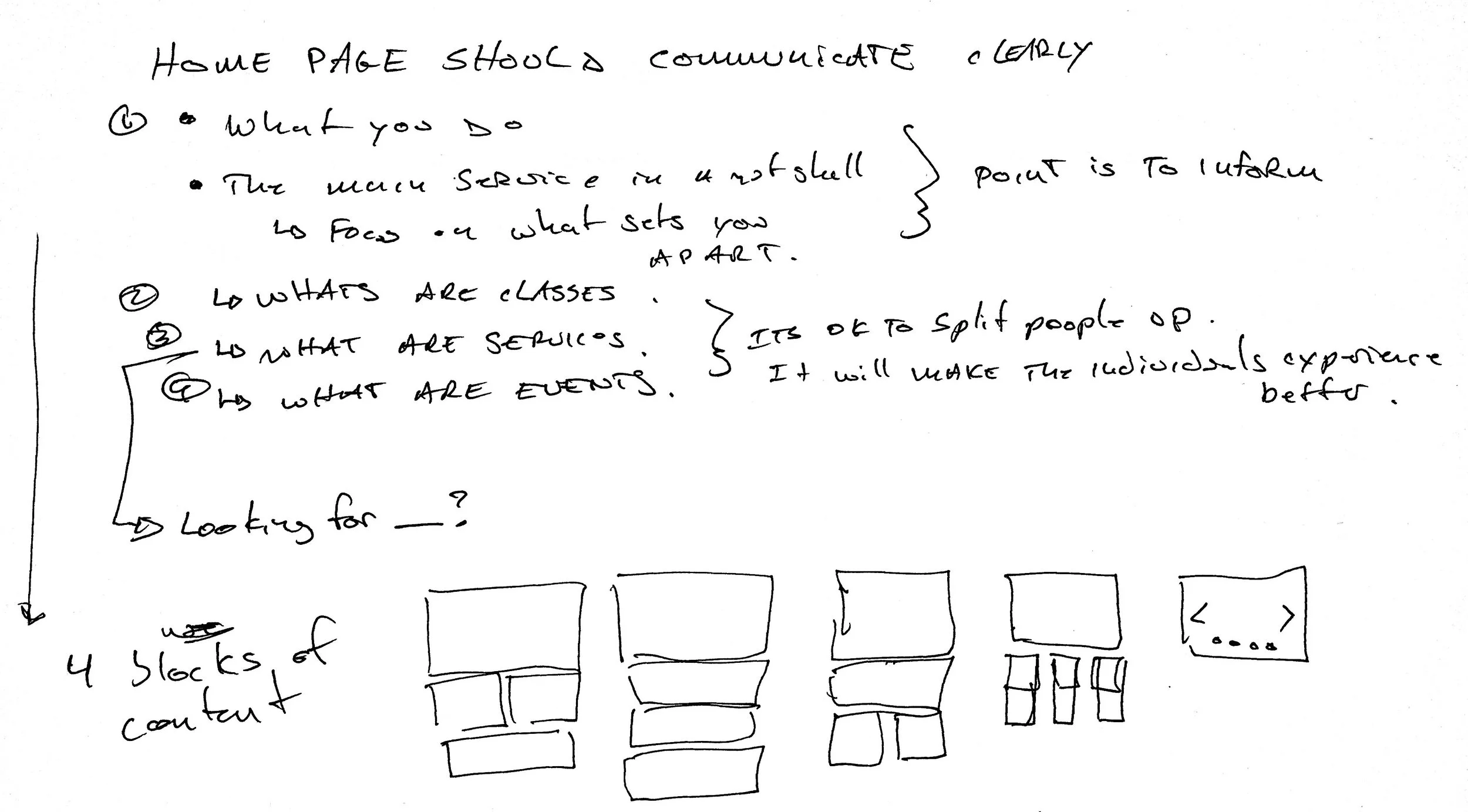 Original homepage that segmented classes and services