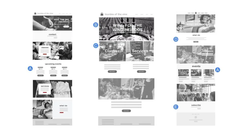 After more conversations and considerations with the stakeholder, it was decided to bring "classes" under the umbrella of services as it better reflected what Lourdes of the Vine could offer it's clients.