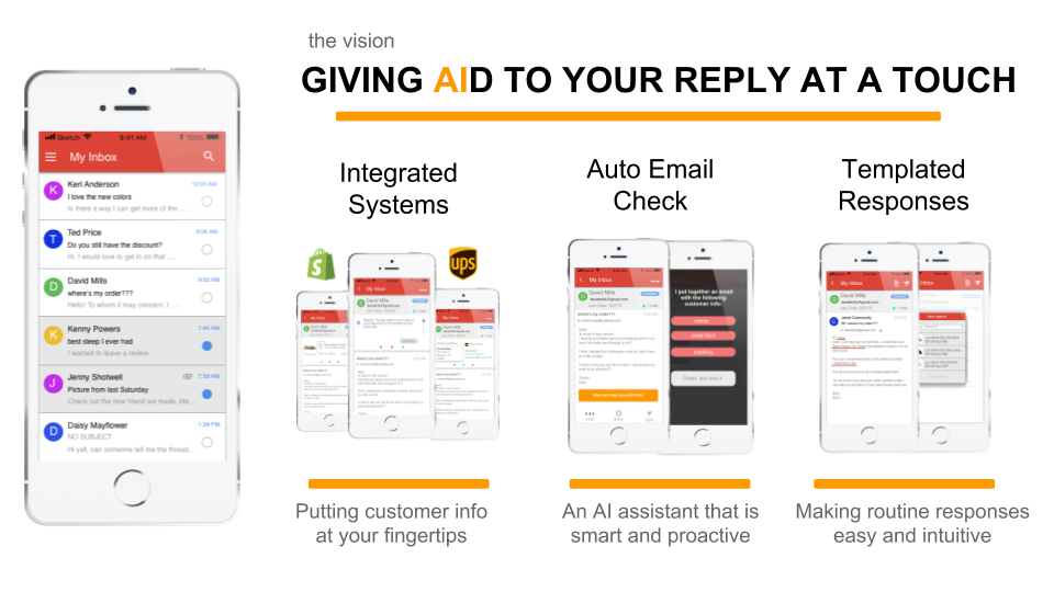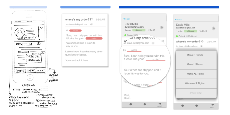 The goal was to give users are ready made email, but give them enough freedom to still feel in control and be able to make changes. Be able to give users the ability to pull in pre generated templates to cut out some of the more repetitive parts of email response.