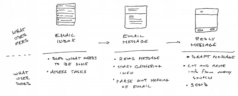 Within the scope of the project it became clear that I could make the most impact in two areas: the reading and responding of an email. I would have to leave the assessment of the core experience for later.