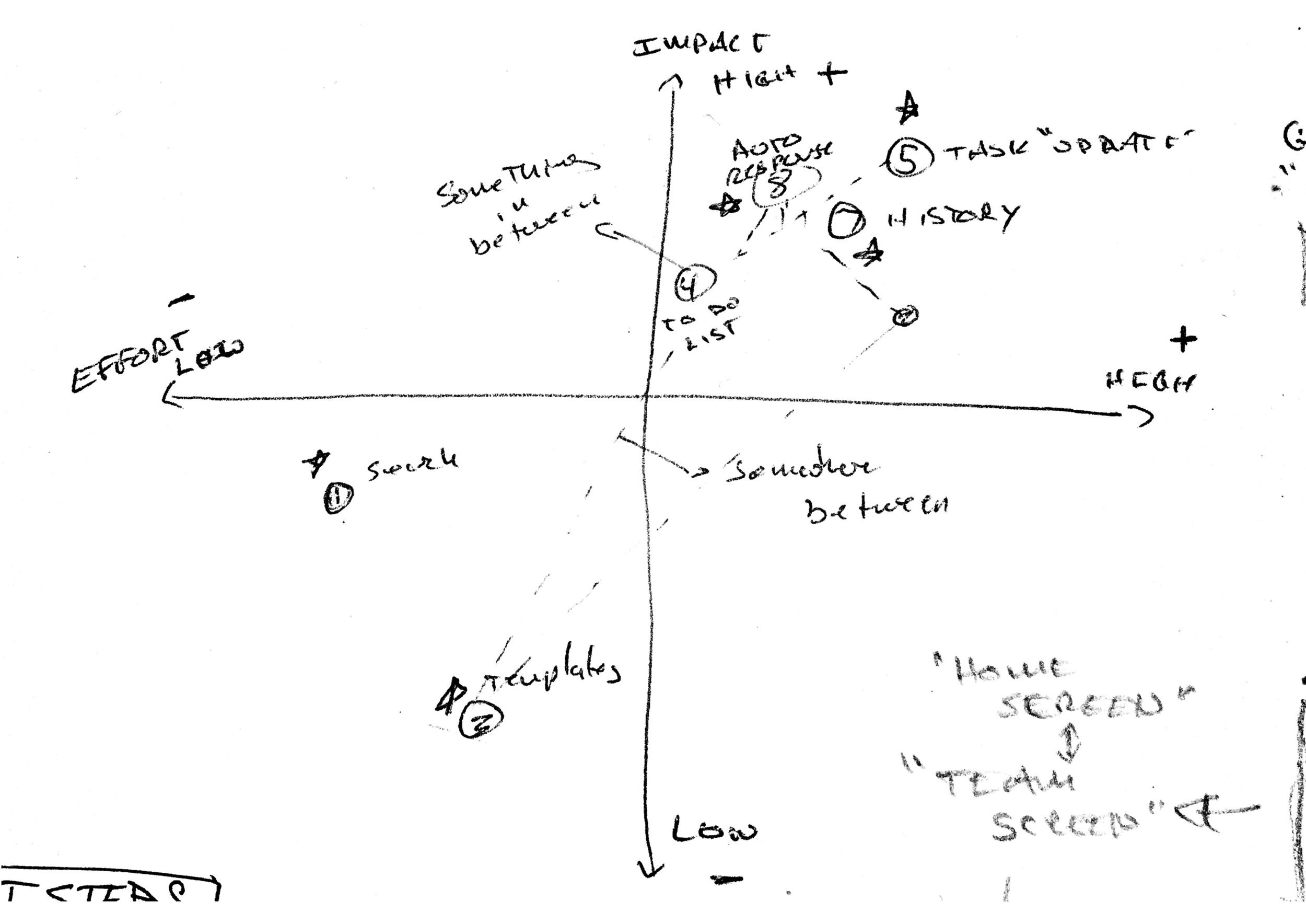 Once I had the list of potential features, I prioritized which ones were going to be included using viable vs. impact axis analysis.